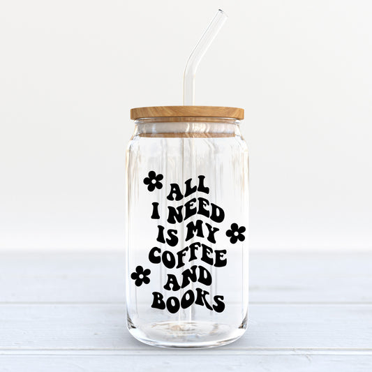 Coffee & Books Glass Can Cup