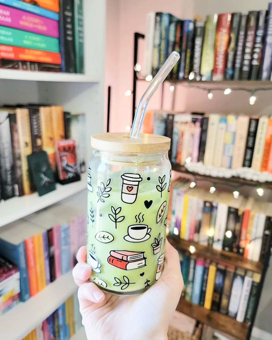 Books, Plants, & Coffee Glass Cup