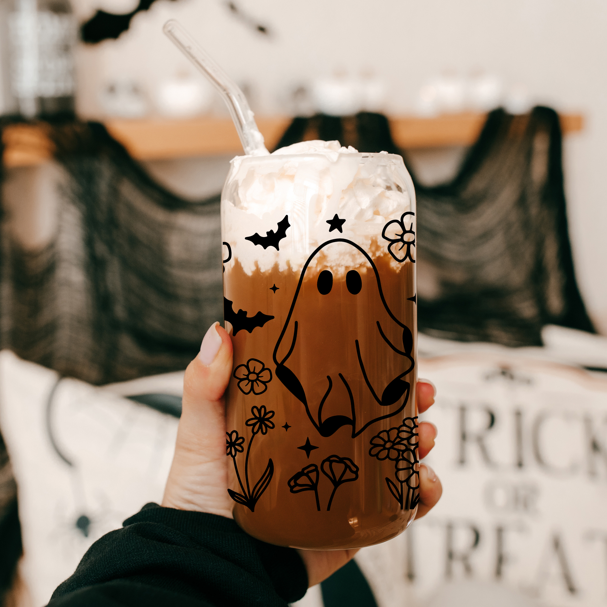 Nothing cuter than some boho ghosties!🖤 These trendy and eco friendly cups are perfect for iced coffee, cocktails, or any drink! They make amazing gifts too! Cups are 16 oz.