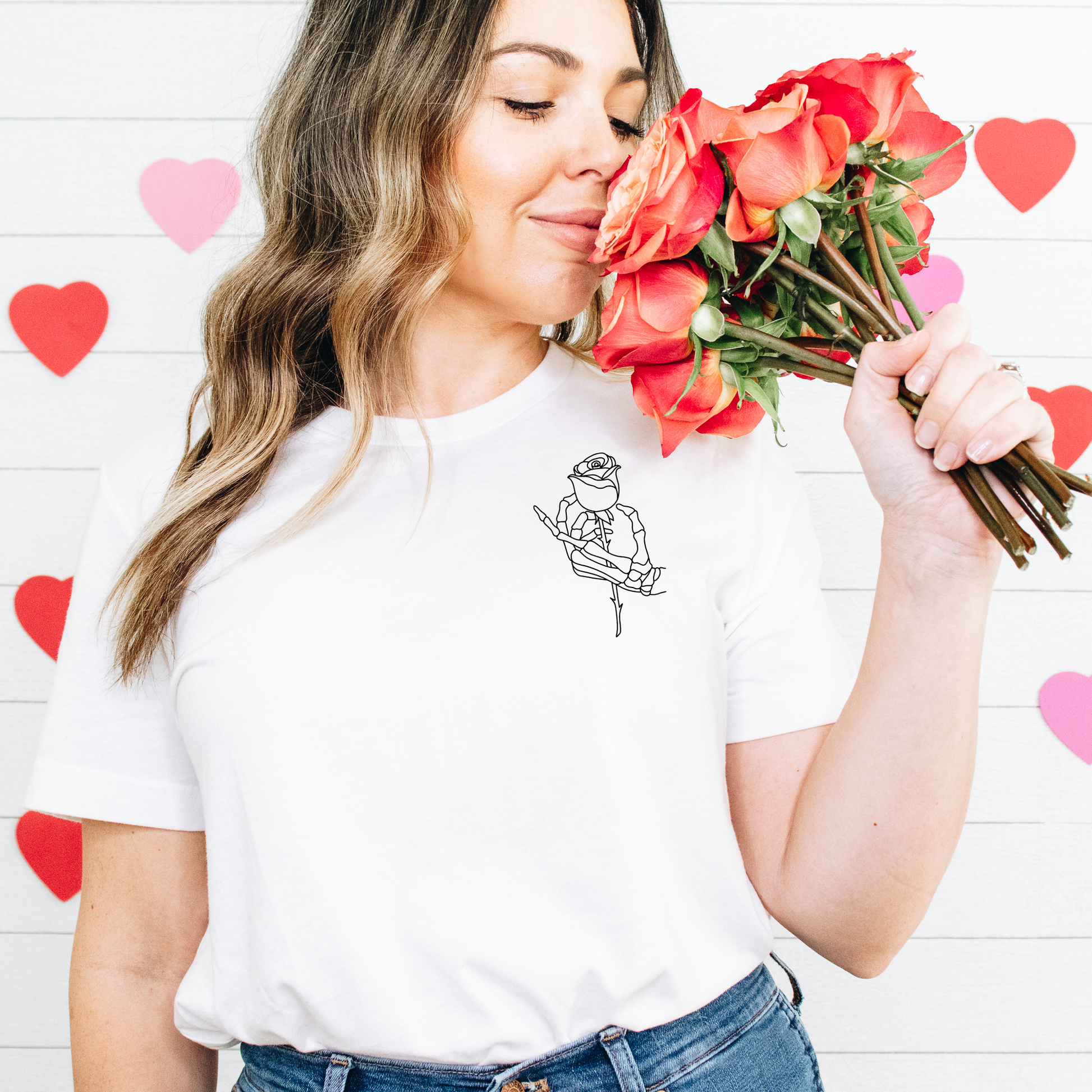Skeleton & Rose with 'The Lovers' Tarot Card
